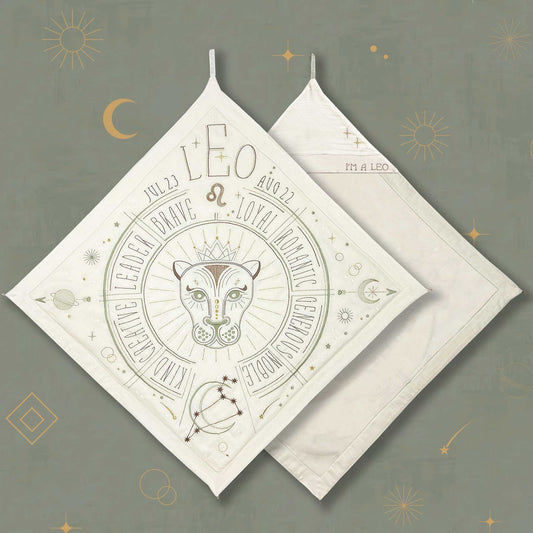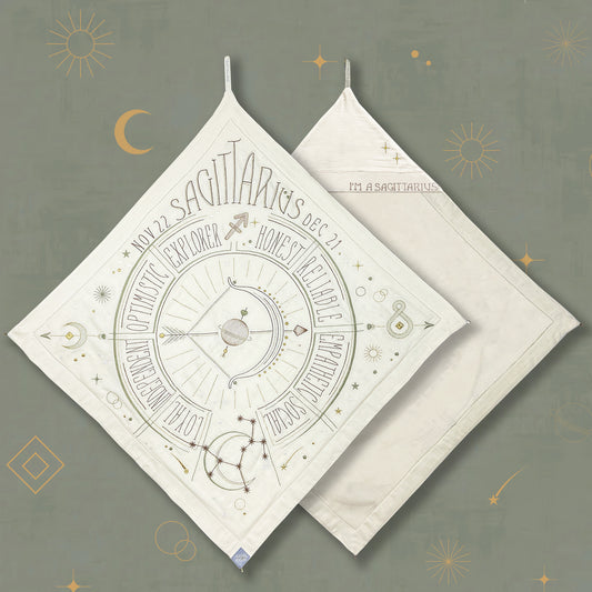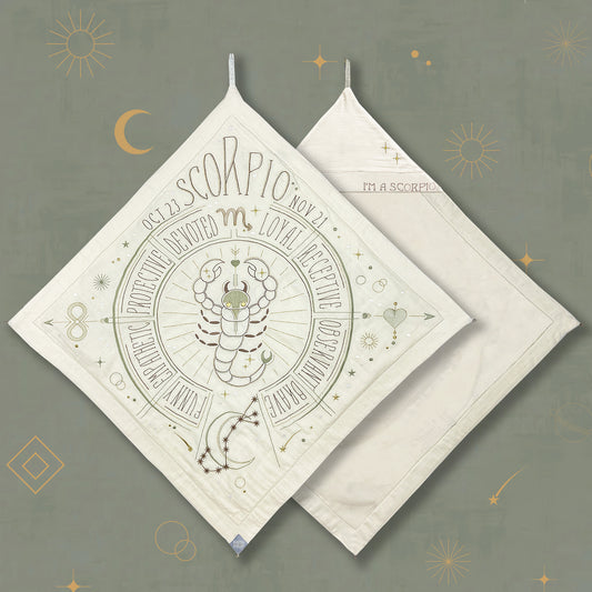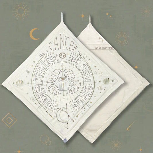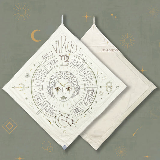 Wrap your little one in this Sacred Birth Cape—a beautifully embroidered bath cape personalized with their star sign. It displays the stars' positions and personal traits, while its shape, colors, and symbols elevate the energy of their sacred zodiac spirit.